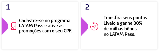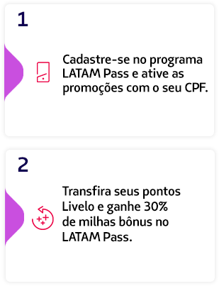 Você já pode transferir seus pontos para o LATAM Pass. Suas milhas serão creditadas em até 30 dias corridos após o término da campanha.